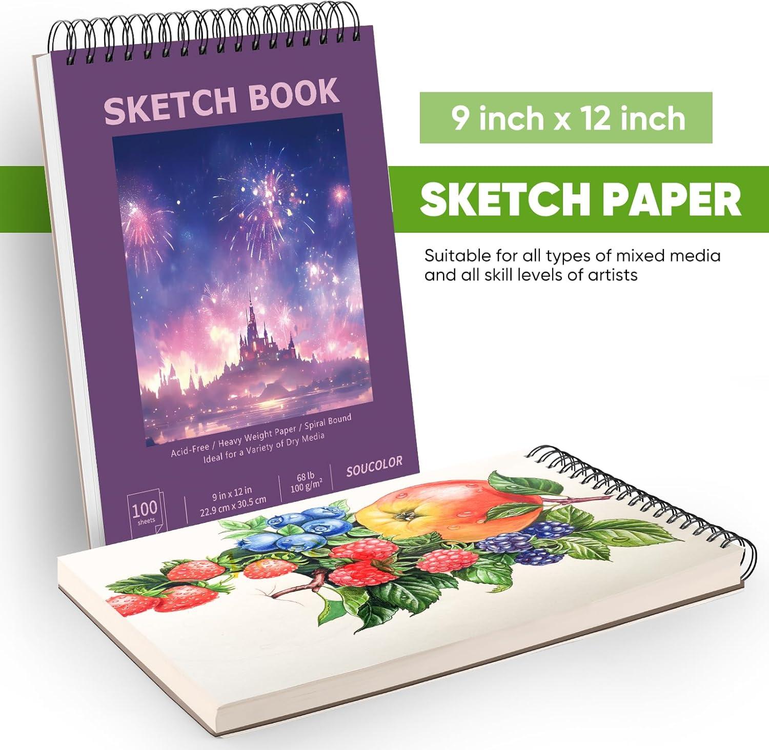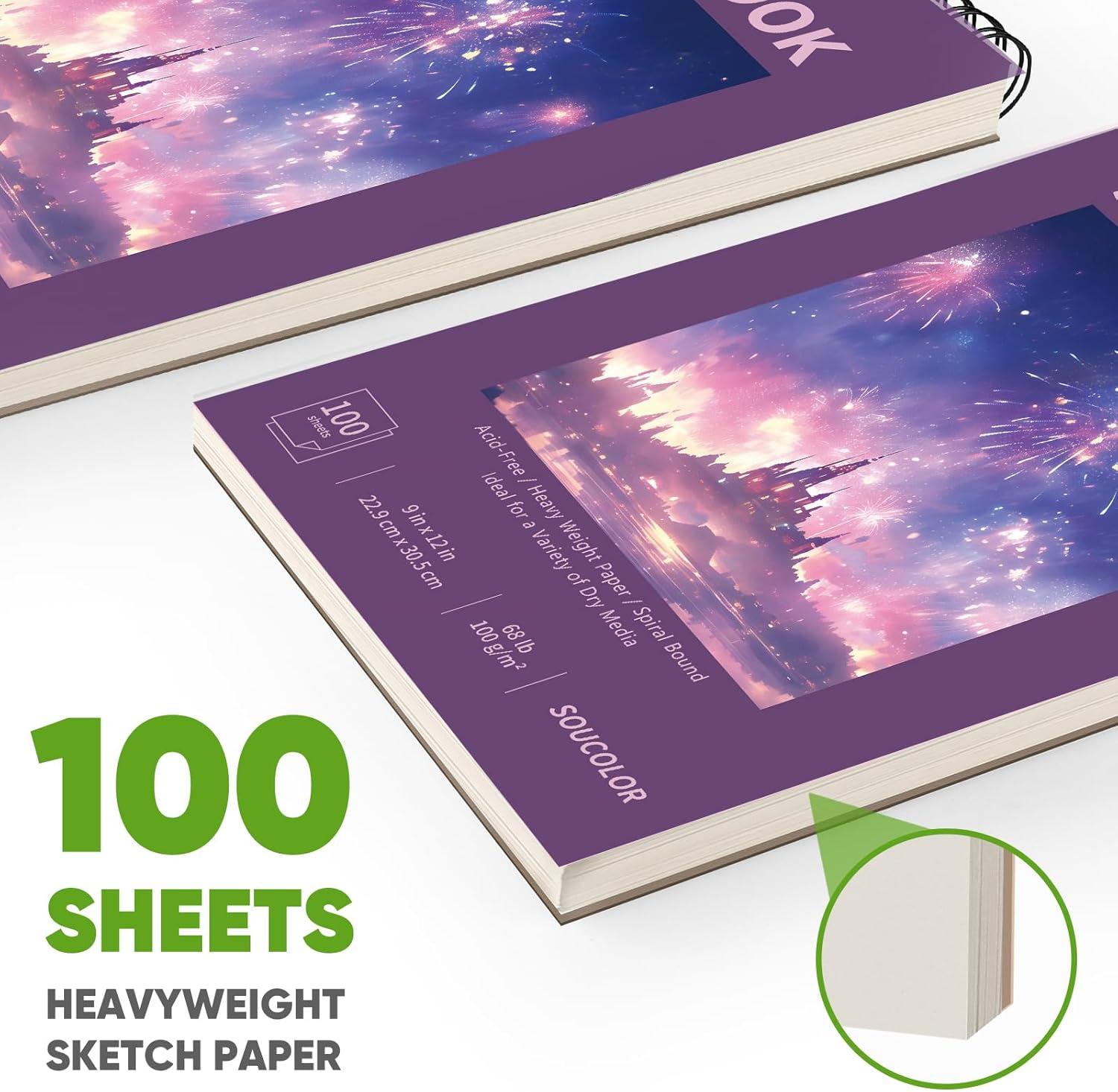 Soucolor 9"x12" Sketch Book for Women Teens Girls Sketch Book, 100 Sheets (68lb/100gsm) Drawing Paper for Kids, Art Supplies for Girls Ages 8-12, Beginners, and Adults, 1-Pack Cute Purple